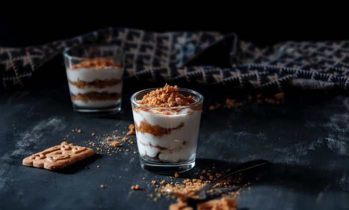 - Skuvajte kafu i kada se malo ohladi umočite piškote u nju. Uzmite malo šire čaše, na dno poređajte piškote, preko njih premažite sloj fila, pa opet poređajte red piškota i fil.