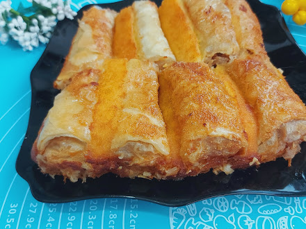 Pleh dobro podmazati, pa poređati rolnice. Seći makazama na željene dužine, pa je preliti pripremljenim prelivom. Peći na 200 stepeni C oko 50 min.