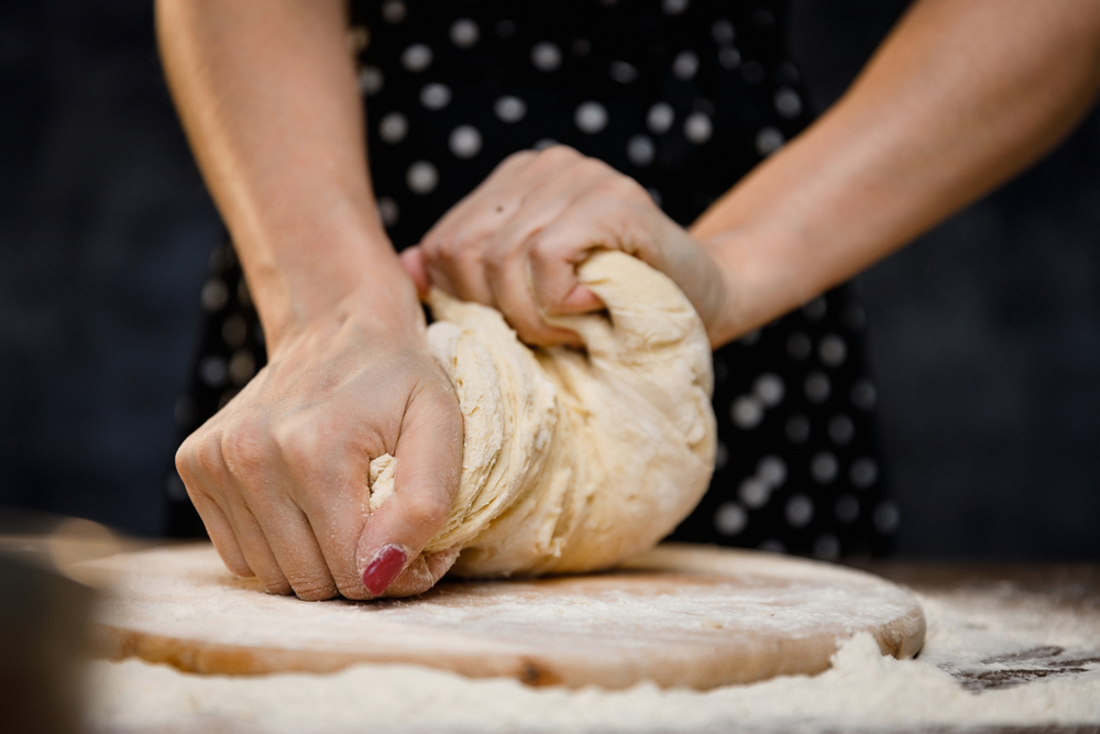 Izmešajte brašno i mast pa polako dodajte uskisli kvasac i so, umesite meko testo i podelite ga na manje lopte. Nakon što je testo naraslo, razvijte svaku loptu u manju lepinju. Jednu lepinju razvijte oklagijom i isecite na tanje trake koje ćete koristiti za ukras.