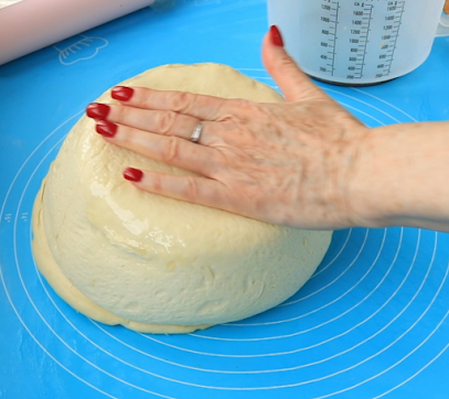 Dodati sve brašno i zamesiti glatko testo, pokriti folijom i krpom da odmori 30 min na sobnoj temperaturi..