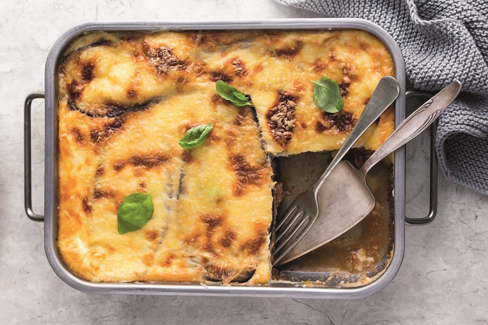 Ponovite postupak dok ne utrošite sav materijal, ali tako da na kraju musaka bude prekrivena paprikom. Prelijte sa 2 dl mleka i pecite u zagrejanoj rerni na 200 stepeni, oko 60 minuta.