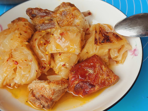 Kupus iseći na kocke ukoliko je prekiseo malo ga oprati. Poređati u šerpu pola kupusa, zatim odozgo krmenadle suva rebra i suva slanina i pokriti drugim delom kupusa.
