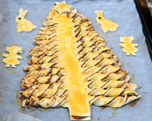 Iseći malu zvezdu i staviti u vrh. Premazati žumancetom. Peći na 220 stepeni C oko 25 min.