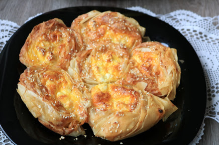 Ređati u krug. Dodati još malo fila i premazati uljem. Može malo i susama. Peći na 190 stepeni C oko 30 min.