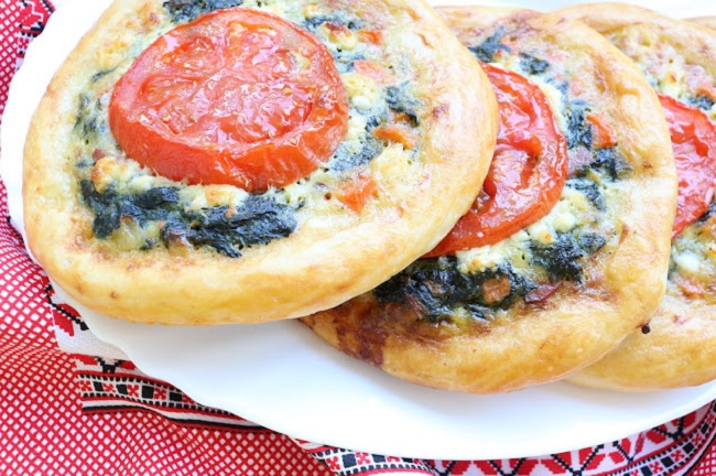 U to dodati jaja i sir..malo začina i soli. Puniti naše tanjiriće od testa. Odozgo izmrviti ostatak sira i na kraju stavite po jedan krug paradajza. Još malo posolite i malo pouljite. - Pecite na 220 stepeni oko 30 min.