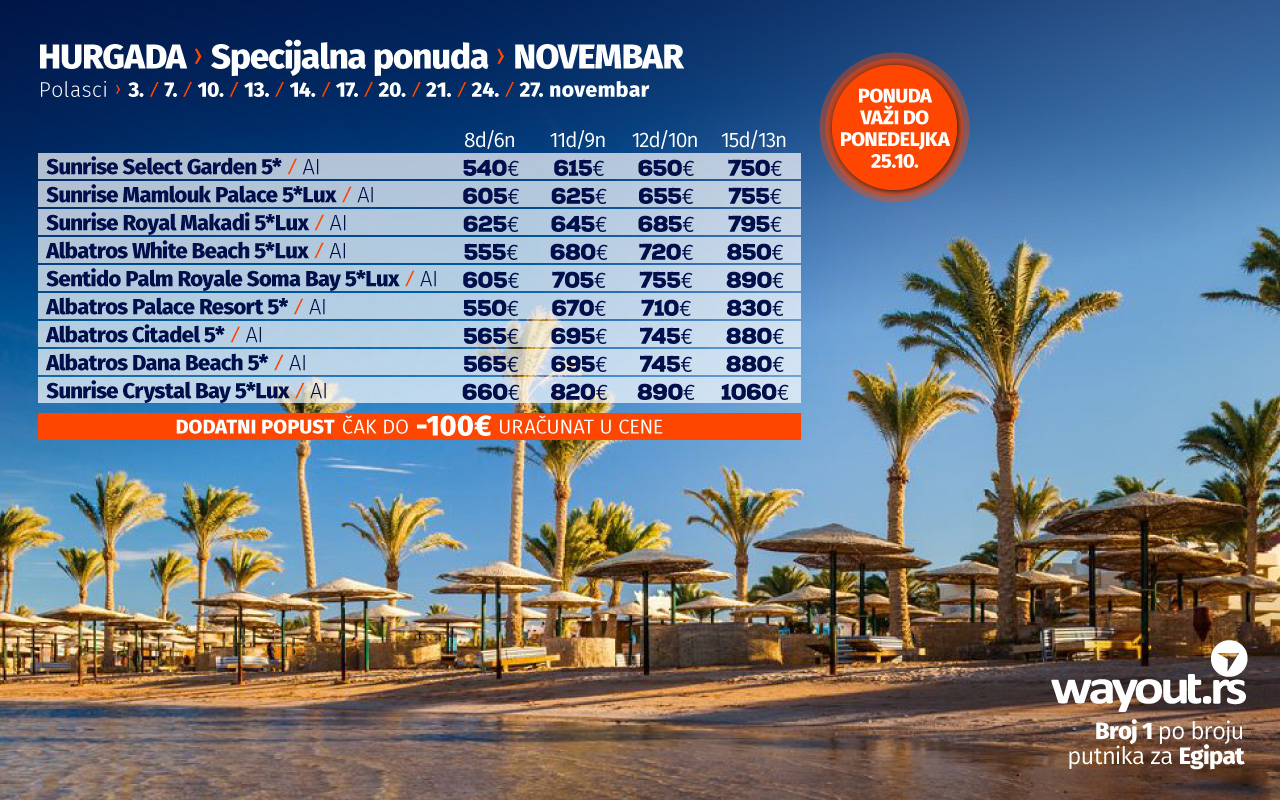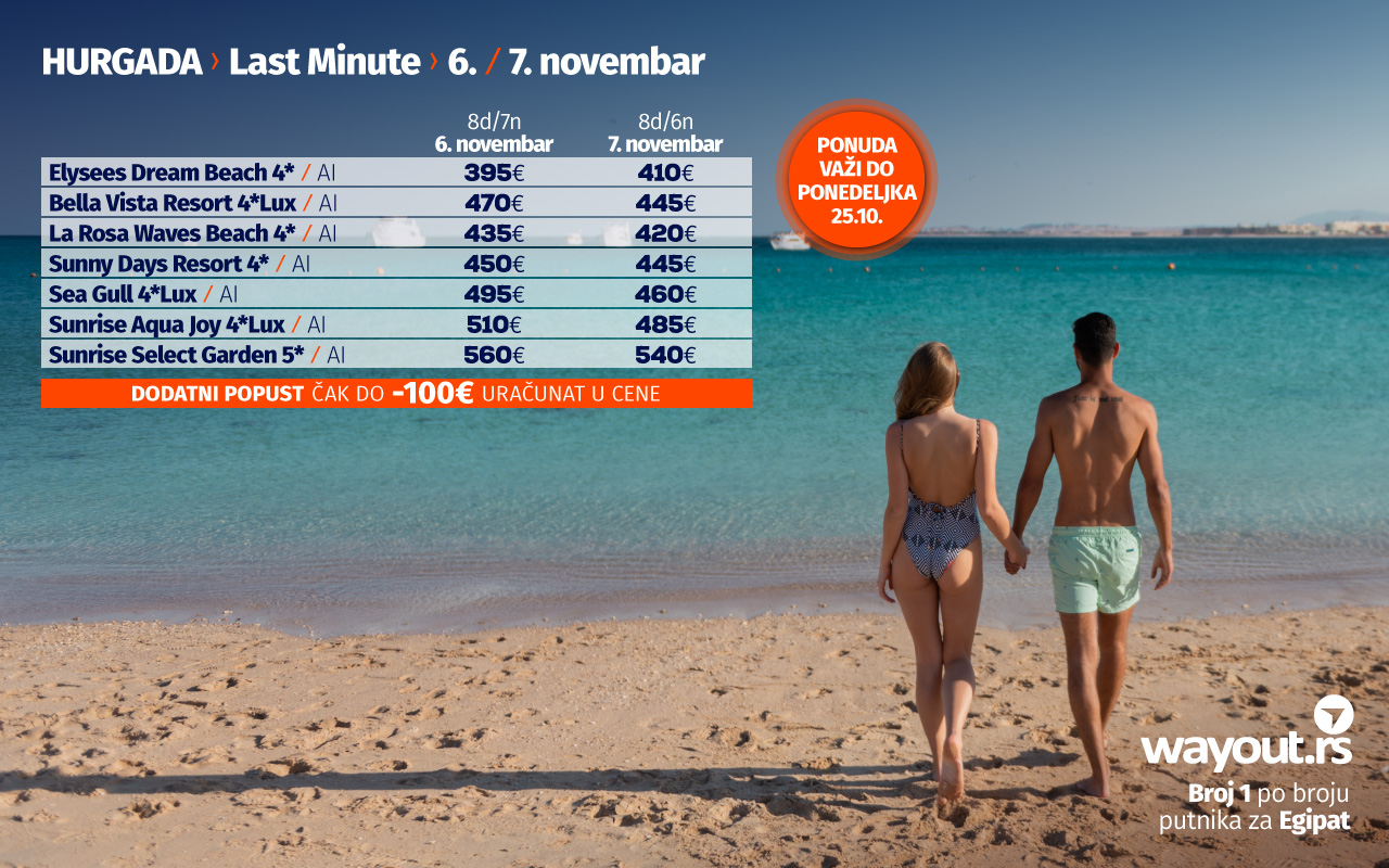 WAYOUT: HURGADA I DUBAI U OKTOBRU I NOVEMBRU PO LAST MINUTE CENAMA