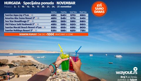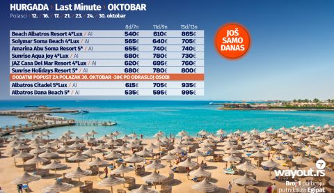 I dalje niste rezervisali letovanje? Hurgada sa WAYOUT-OM po LAST MINUTE cenama u julu je...