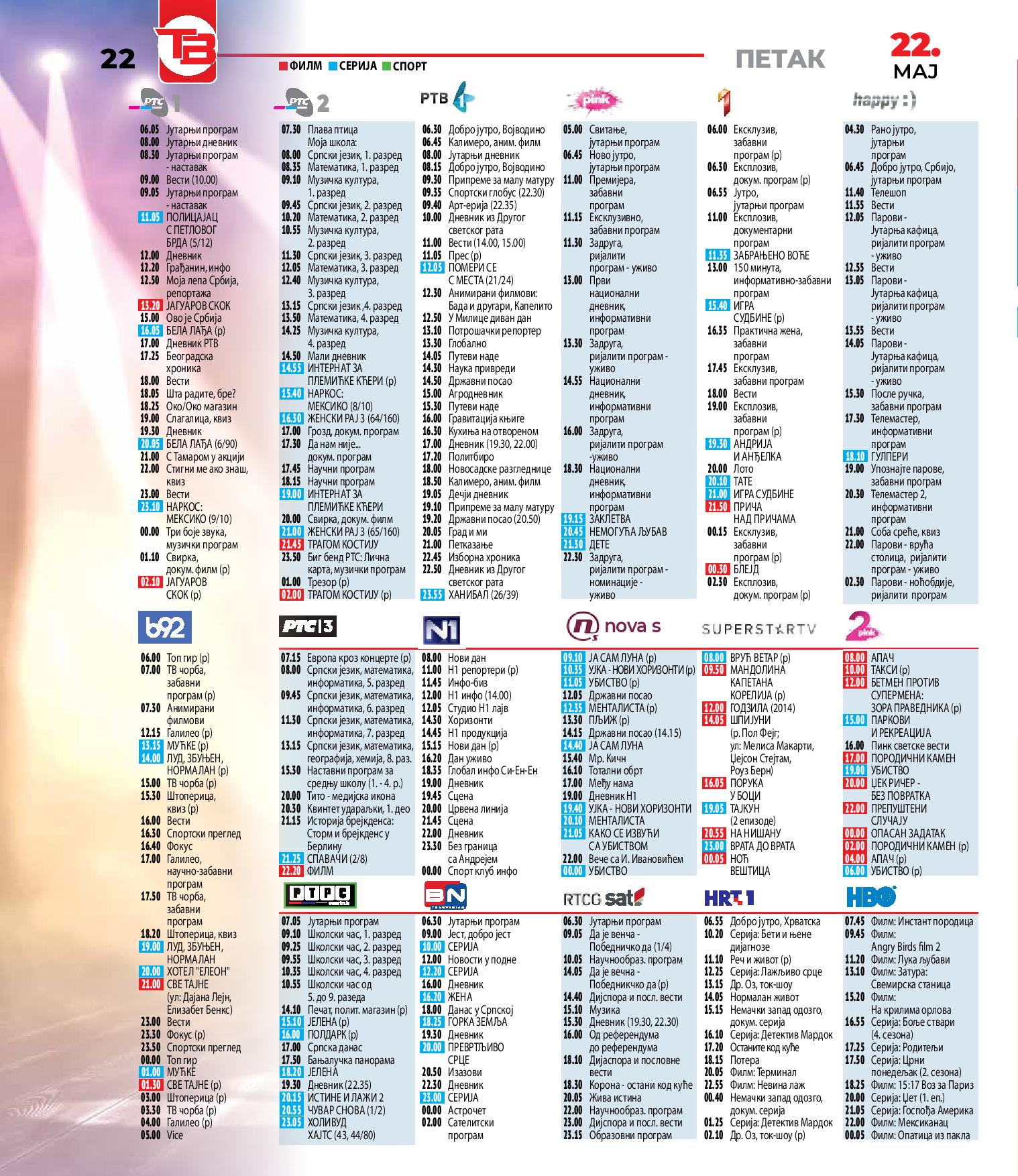 TV program za petak - 22. maj