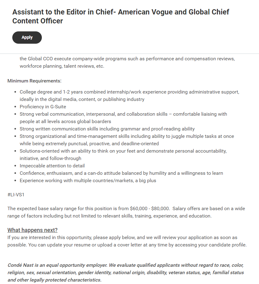 Foto: Printscreen Condé Nast / Via condenast.wd5.myworkdayjobs.com