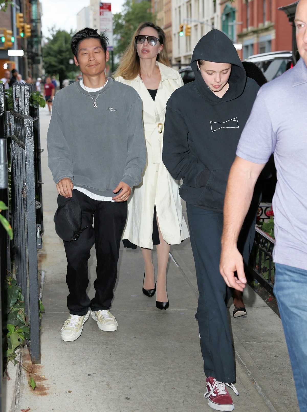 Anđelini, koja je bila obučena u krem kaput, pridružili su se Paks (19), Zahara (18) o Šajlo (17), koja se krila ispod kapuljače dukserice.