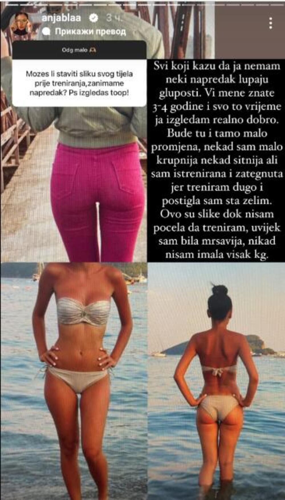 – Svi koji kažu da ja nemam napredak lupaju gluposti. Vi mene znate 3-4 godine i sve vreme ja izgledam realno dobro. Bude tu i tamo malo promena, nekada sam malo krupnija, nekada sitnija ali sam istrenirana i zategnuta jer treniram dugo i postigla sam šta želim. Ovo su slike dok nisam počela da treniram, uvek sam bila mršavija, nikada nisam imala višak kg – napisala je ona uz opis fotografija na kojima se i te kako vidi veliki napredak u oblikovanju njenog tela.