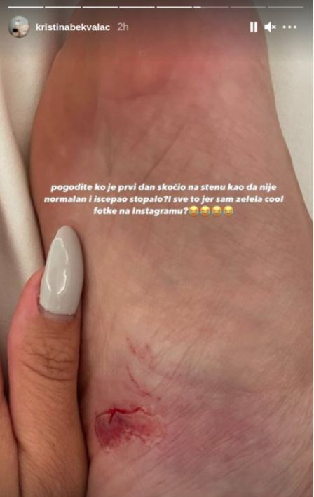 - Pogodite ko je prvi dan skočio na stenu kao da nije normalan i iscepao stopalo? I sve to jer sam želela cool fotke na Instagramu? - napisala je Kristina na objavi svoje posekotine.