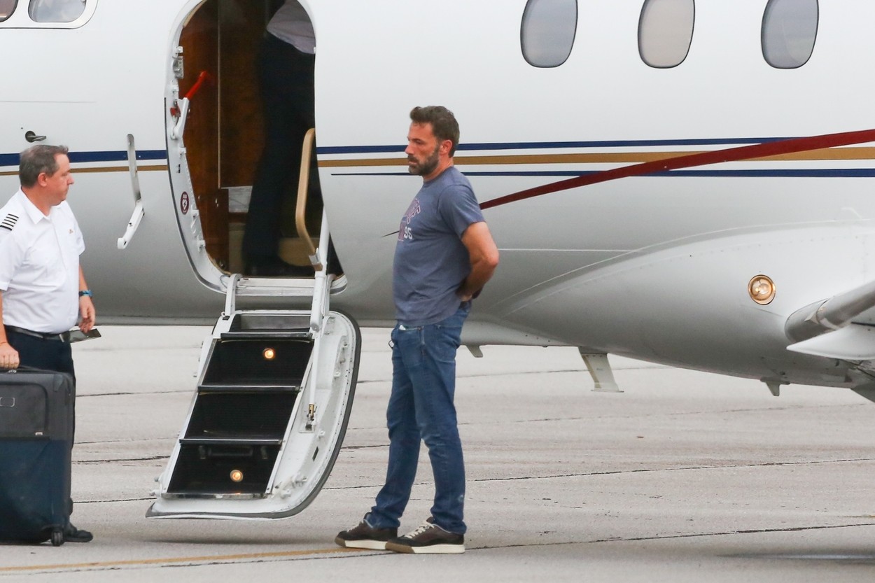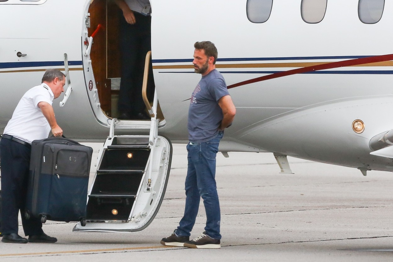 Aflek je izgledao poprilično iscrpljeno nakon trodnevne svadbene proslave, dok je ležerno obučen, čekao da se njegovi gosti ukrcaju u avion.