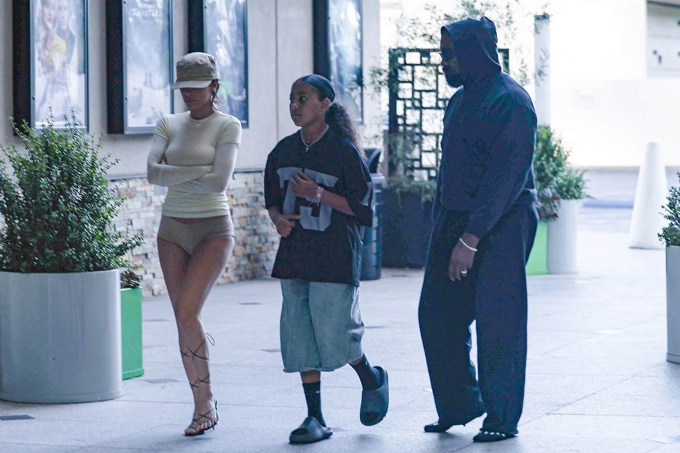 Veran svom prepoznatljivom stilu, Kanje Vest je nosio crnu duksericu, široke pantalone i naočare za sunce, dok je Nort bila u dresu i širokim bermudama.