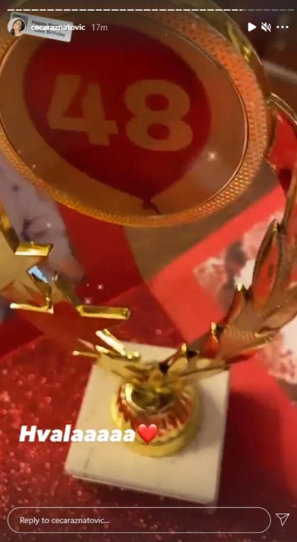 Ceca je dobila zlatni pehar sa brojem 48 i nekoliko fotografija na kojima je folk zvezda sa svojim unukom Željkom.