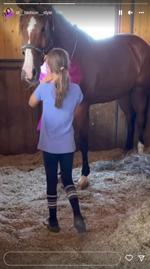 Viktorija voli hipodrom i konje, pa je porodica odlučila da je obraduje poklonivši joj konja. Na snimku koji je Sonja objavila na društvenoj mreži Instagram vidi se da su konju namestili roze mašnu.