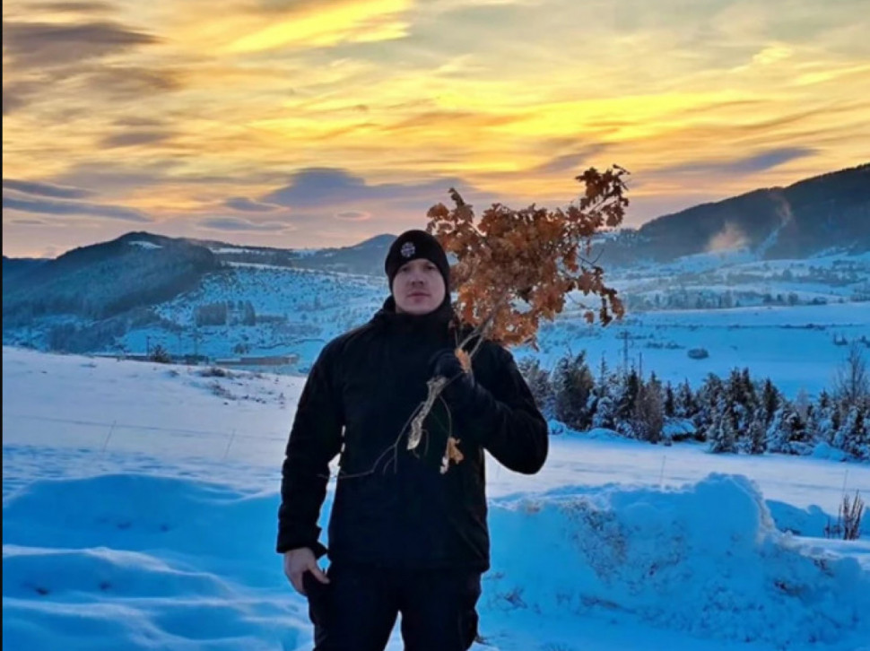 Naime, Sloba je objavio nekoliko fotografija na kojima je okružen snegom i sa kapom na glavi, dok u ruci nosi badnjak.