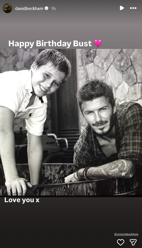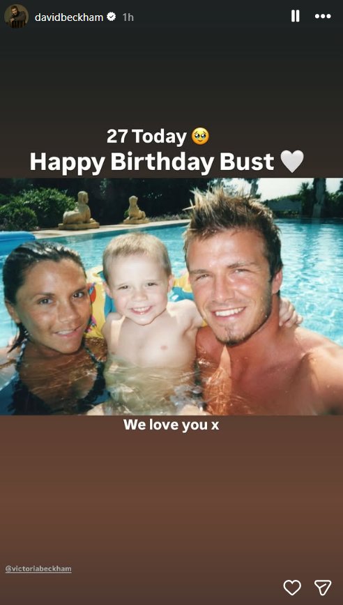 Uz staru fotografiju na kojoj su on, Bruklin i Viktorija Bekam u bazenu, napisao je: „Danas puniš 27, srećan rođendan, Bust.”