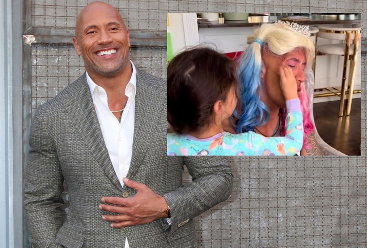 Dvejn Džonson (50), poznatiji pod nadimkom Rok, uz video u kome se pojavljuje sa plavim uvojcima, krunom na glavi i razmazanom šminkom, dok se njegove dve devojčice ushićeno zabavljaju, napisao je: