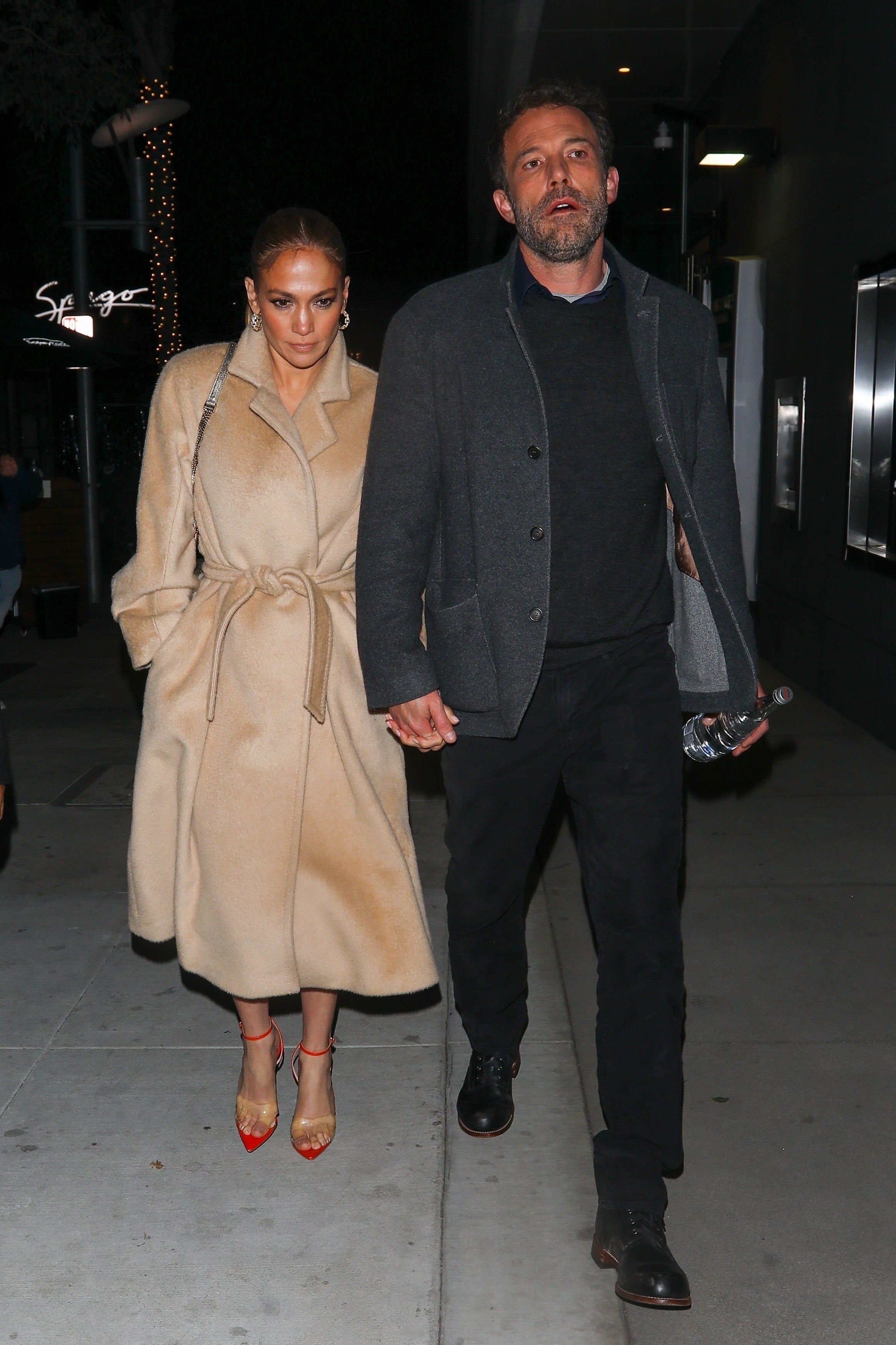 Par je prvo fotografisan na večeri na Beverli Hilsu. Dženifer izgleda sjajno u kaputu bež boje koja se smatra jednom od popularnijih boja ove sezone, dok joj je kosa bila skupljena u zaglađeni, jednostavni rep.