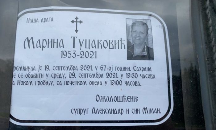 Podsećanja radi, Marina je posle duge i teške bolesti preminula u nedelju 19. septembra u KBC "Dragiša Mišović", a za života izrazila je želju da bude sahranjena pored sina Miloša, a ne u Aleji velikana na Novom groblju.
