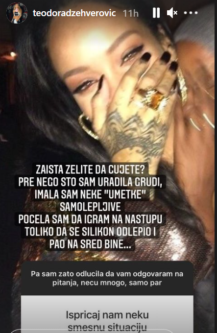 - Pre nego što sam uradila grudi, imala sam neke "umetke" samolepljive. Počela sam da igram na nastupu toliko da se silikon odlepio i pao nasred bine - napisala je Teodora.