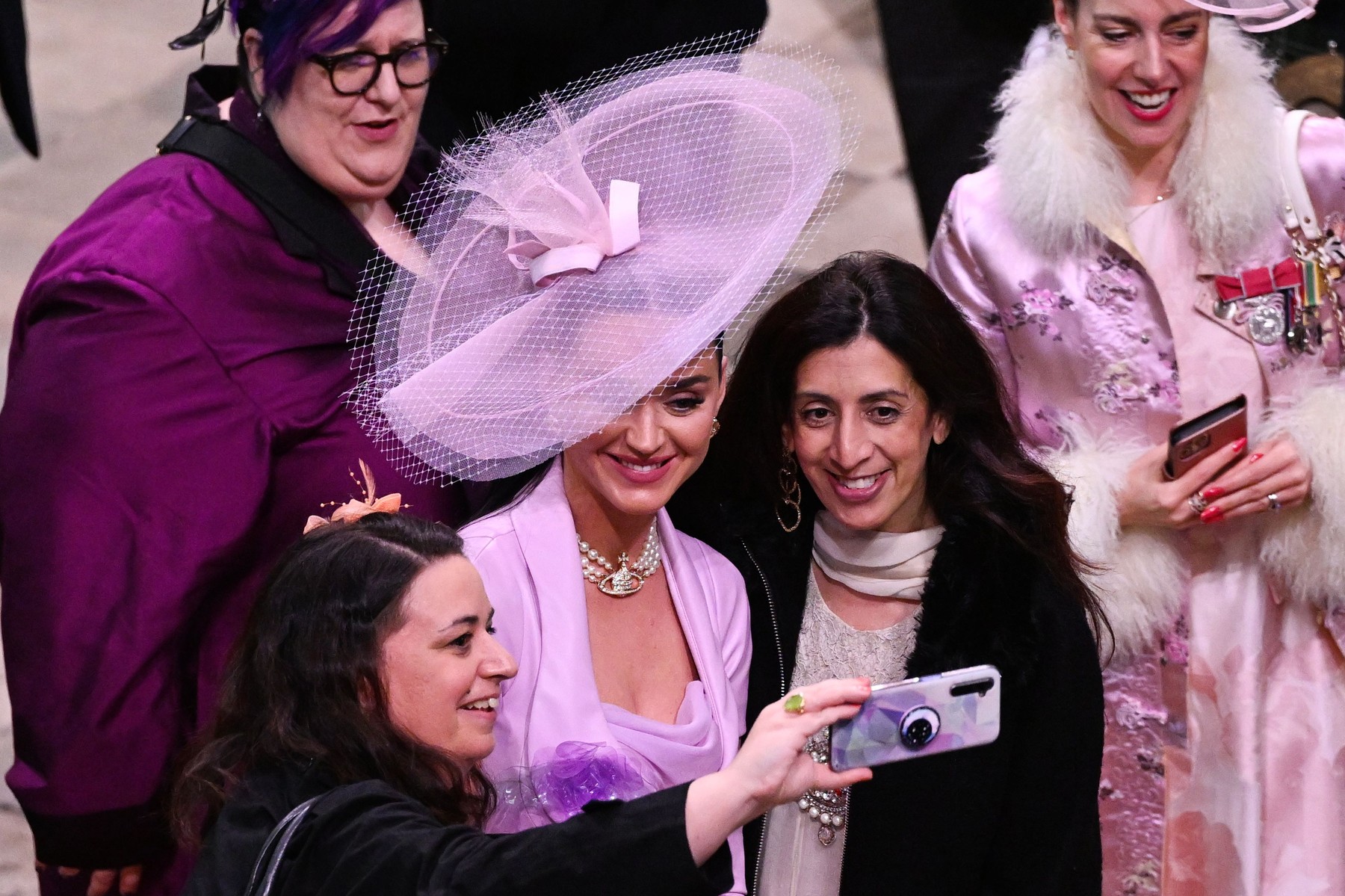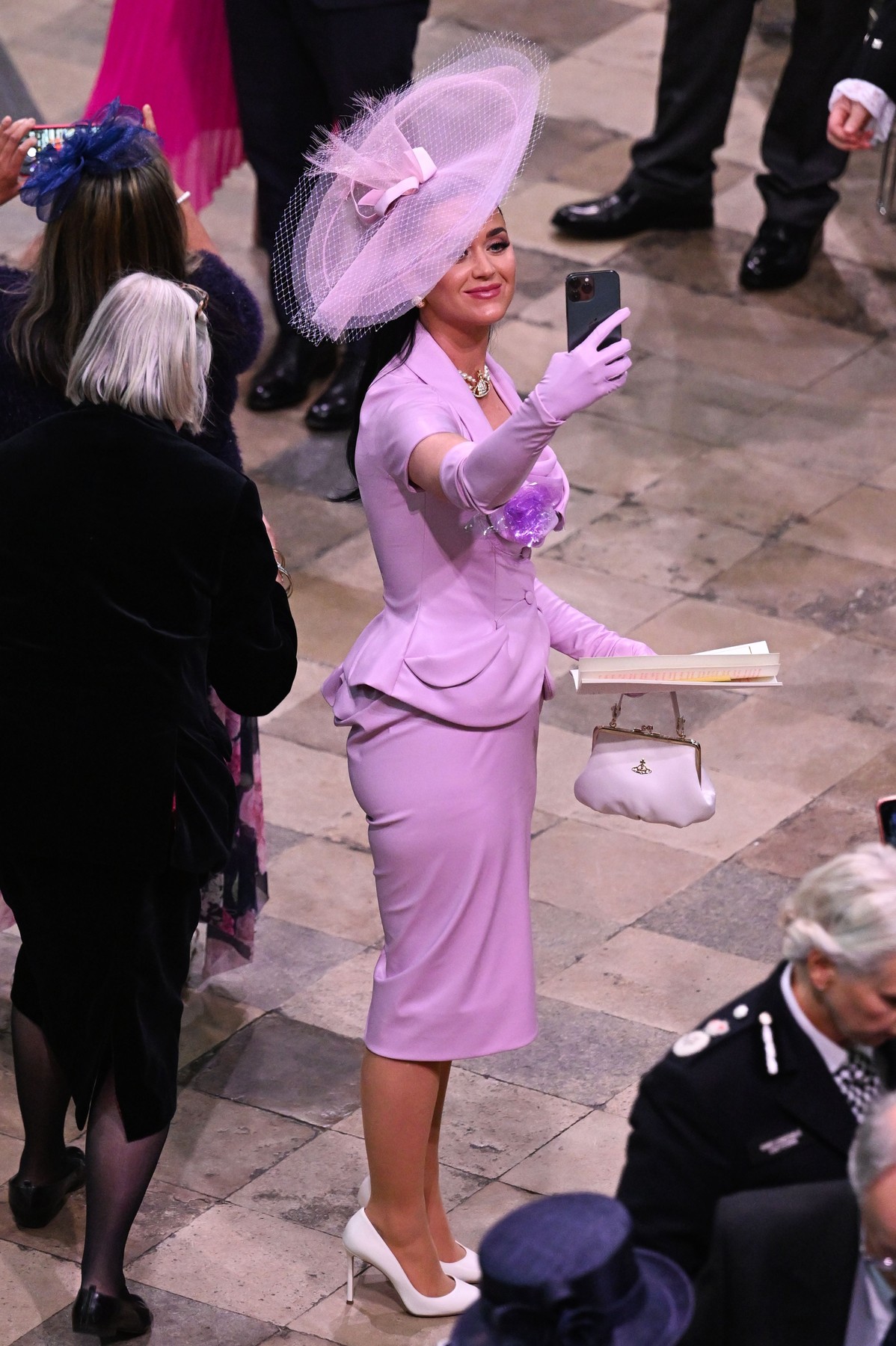 Peri je izgledala otmeno, pojavivši se u crkvi u elegantnom kompletu lila boje, sa prelepim damskim šeširom. Čini se da je bila oduševljena što se tu našla, pa je pravila selfije, a takođe se slikala sa fanovima.