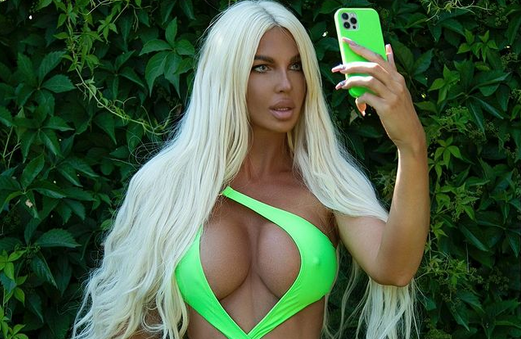 Neon boja je hit, a drečava zelena kao da nikada nije ni izašla iz mode. Jelena Karleuša je odabrala jednodelni kupaći kostim koji više otrkiva nego što pokriva. Kosu je raspustila, a čitav stajling je upotpunila "kaputićem" za mobilni u istoj boji kao i neon kupaći kostim. Na desnoj ruci su joj sat i narukvica, a pored šminke stavila je i plava sočiva.