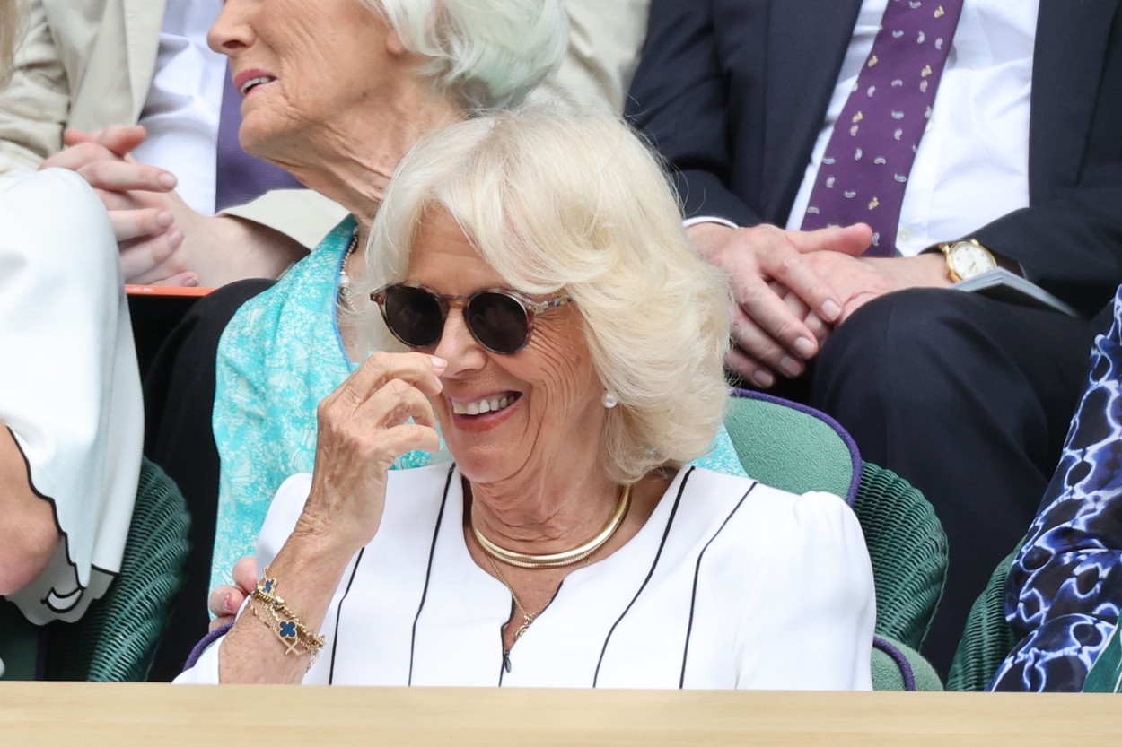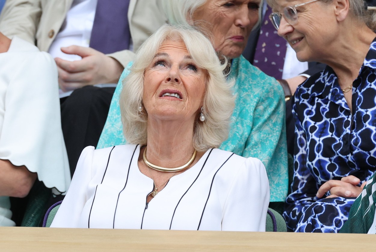 Juče je kraljica Kamila prisustvovala turniru u Londonu, a društvo joj je pravila sestra. Kamila je sedela u kraljevskoj loži na Vimbldonu, i posmatrala meč u beloj haljini sa vertikalnim prugama, dok je oko vrata nosila zlatne ogrlice.