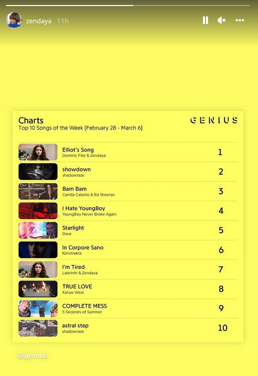 Zendeja je podelila na svom Instagramu top-listu najslušanijih pesama na najpopularnijem sajtu za tekstove numera, a Konstraktina numera "In Corpore Sano", kojom će predstavljati našu zemlju na ovogodišnjem Eurosongu našla se među pesmama čuvenih izvođača kao što su Kanje Vest, Ed Širan i Kamila Kabeljo....