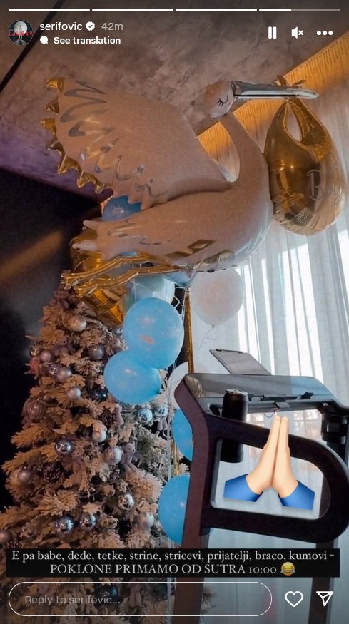 - E pa babe, dede, tetke, strine, stričevi, prijatelji, braćo, kumovi, poklone primamo od sutra od 10:00h - napisala je Marija na društvenoj mreži Instagram uz footgrafiju balona i novogodišnje jelke.