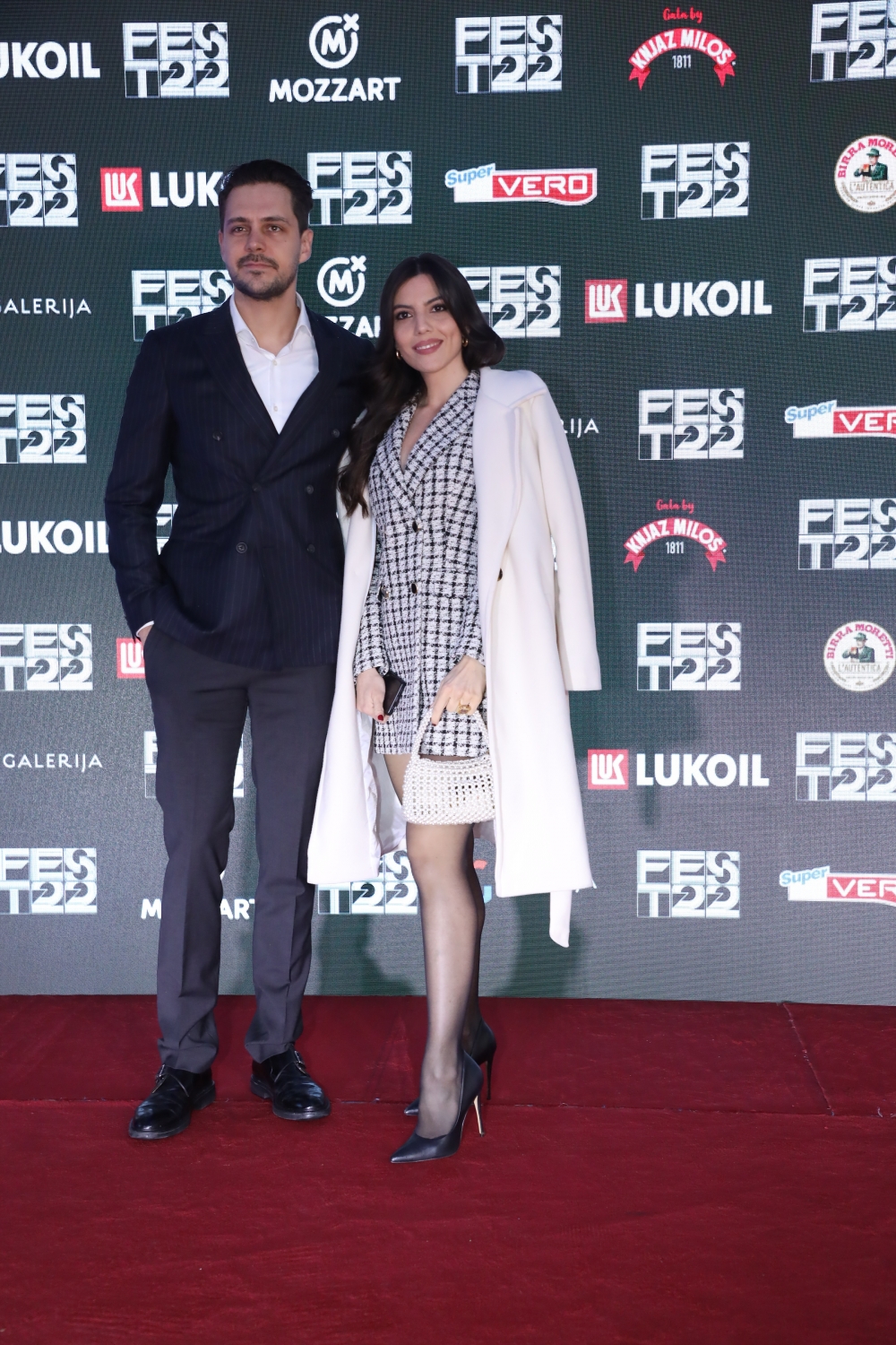 Biković je za ovu svečanu priliku poneo elegantno odelo sa prugama i belu košulju, dok je Ivana obukla karirani crno-beli sako od tvida. Ceo stajling upotpunila je klasičnim crnim salonkama, a preko je ponela beli kaput.