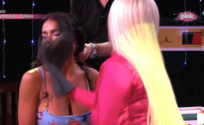 Ipak, pevačici se ruka omakla, pa je malo jači šamar udarila Marini, zbog čega su obe prasnule u smeh.