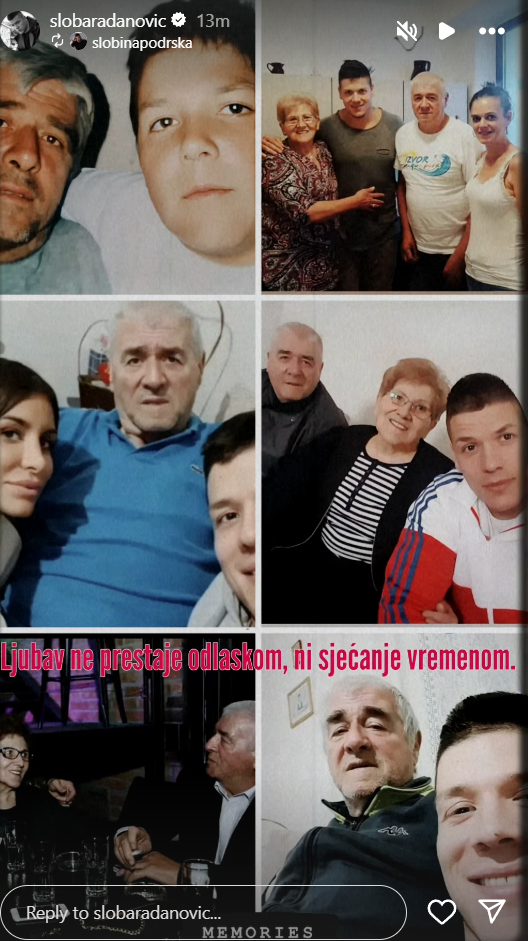 Na fotografiji na kojoj su i njegova majka, kao i izabranica Jelena u nizu emotivnih slika sa Slobinim ocem, pevač je napisao.