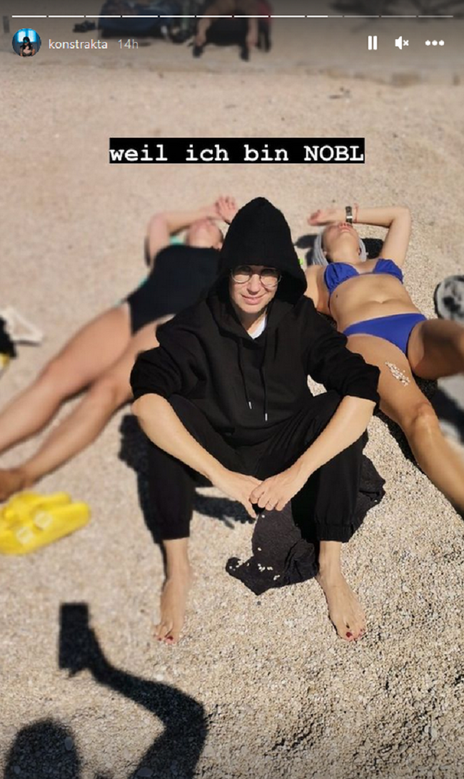 Naime, ona se pojavila u crnom duksu i trenerci istih tonova, umesto u kupaćem kostimu.