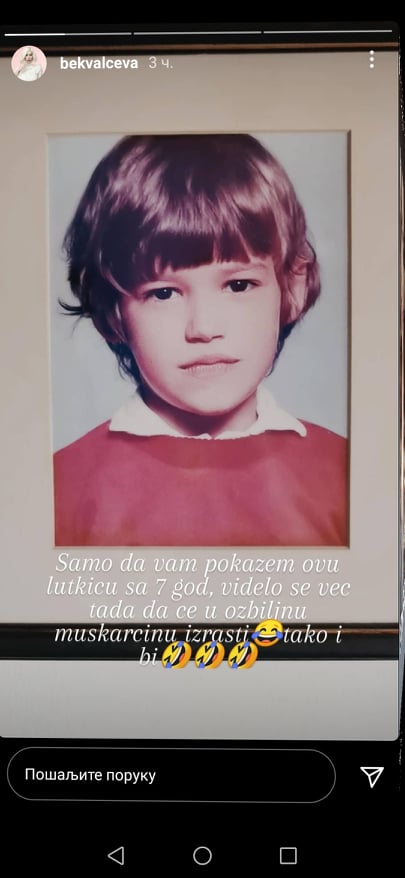 - Samo da vam pokažem ovu lutkicu sa sedam godina, videlo se već tada da će u ozbiljnu muškarčinu izrasti - šaljivo je napisala pevačica na Instagram priči.