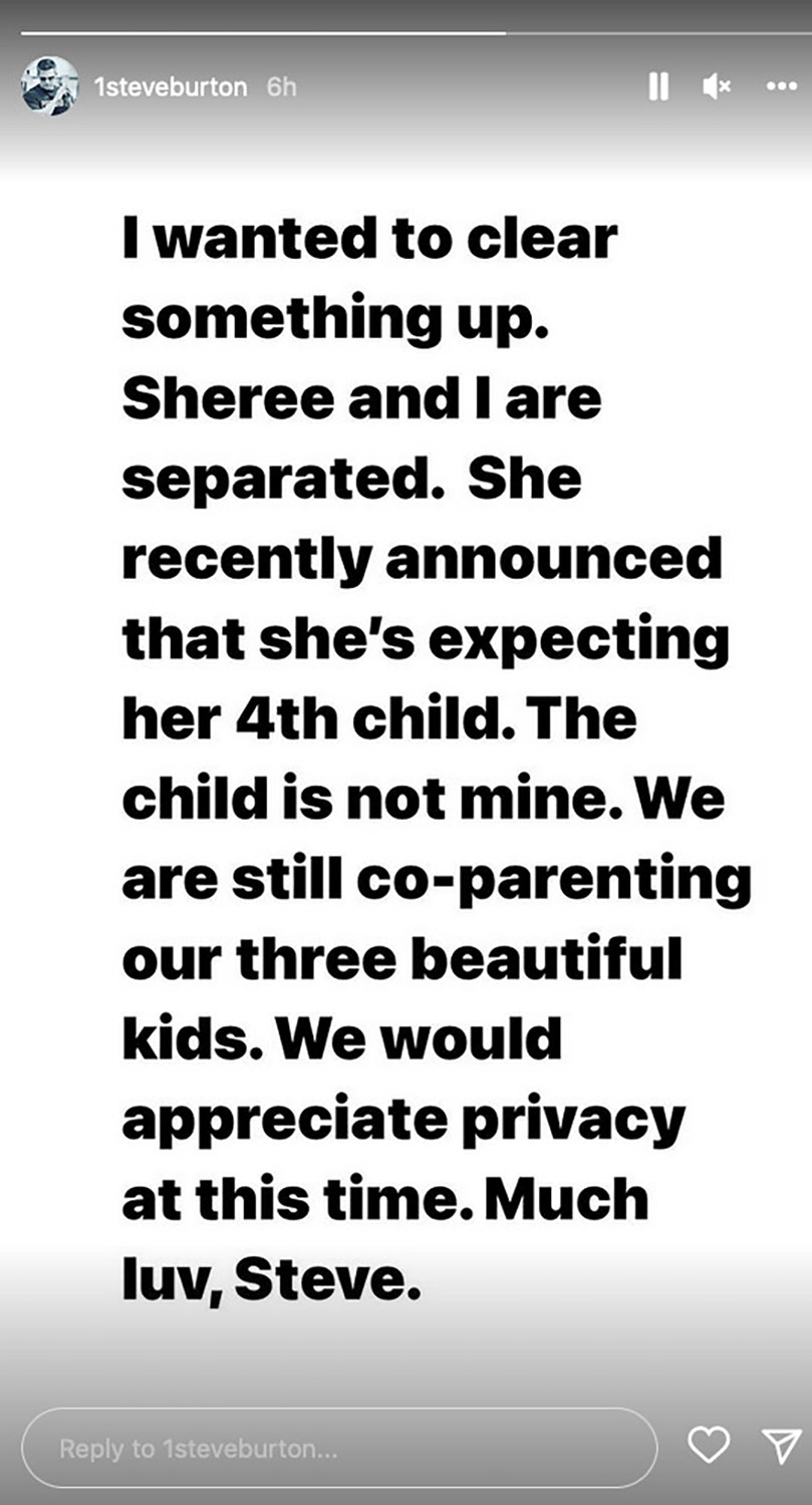-Nedavno je objavila da čeka svoje četvrto dete. Dete nije moje. Još uvek zajedno odgajamo naše troje prelepe dece, a u ovom trenutku bismo cenili privatnost. Puno ljubavi, Stiv. - prenosi portal People.