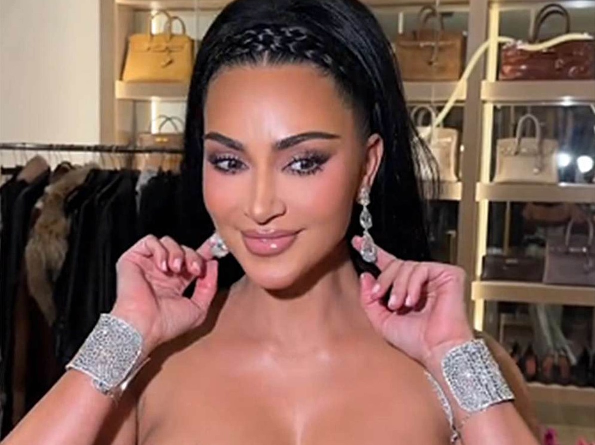 Na sam Božić, Kim je izgledala zapanjujuće u srebrnoj haljini sa crnim šljokicama. Zvezda je svoj izgled kreirala inspirisan revijom Tijerija Muglera iz 1988. godine.