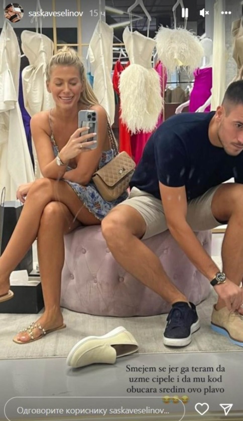 Ona je fotografisala Đorđa i nju u jednoj radnji u kojoj se prodaje svečana garderoba, a sudeći po opisu fotografije koju je postavila, Saška je bila rešena da nagovori svog partnera da uzme cipele, koje se njemu ne dopadaju u potpunosti.