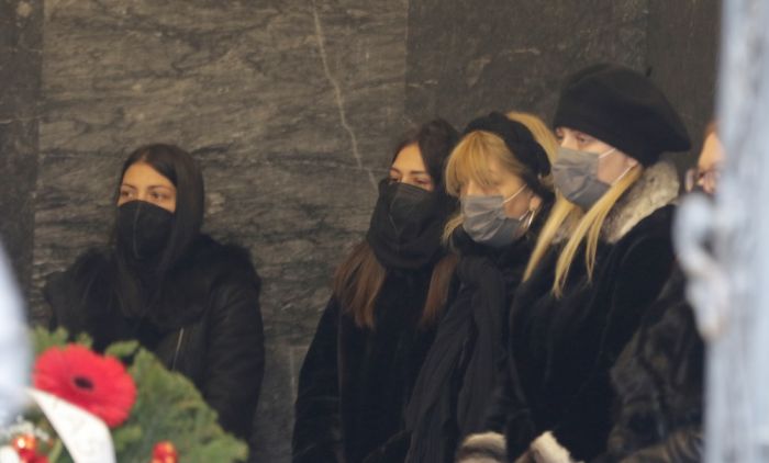 Ćerke Marija i Ana slomljene od bola stoje pored kovčega i primaju saučešće, pored njih nalazi se i bivša supruga Džeja Ramdanovskog, Nada, za koju je uvek govorio da je njegova jedina ljubav u životu, kao i Adrijana koja je sa legendarnom pevačem provela poslednjih 20 godina. Zavijene u crno, ćerke jedva stoje na nogama, dok ih pojedini članovi porodice i prijatelja pridržavaju.