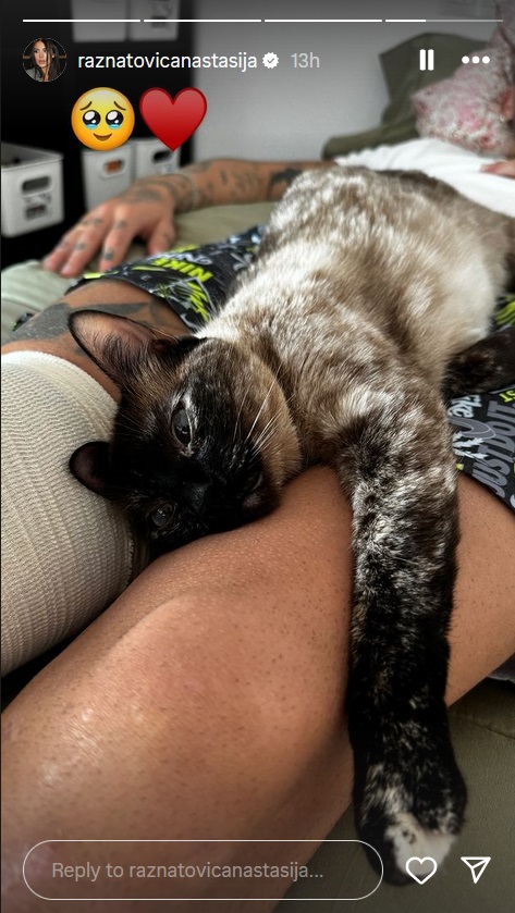 On se sada oporavlja u svom domu u Sevilji, a supruga Anastasija je sve vreme uz njega. Ona je na svom Instagram profilu podelila fotografiju na kojoj vidimo Nemanju kako leži dok mu je koleno u obavijeno zavojima.