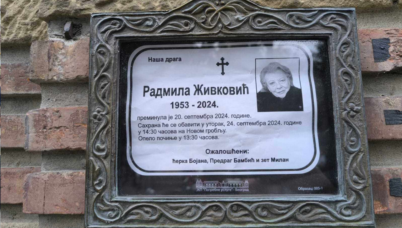 GLUMICA Radmila Živković preminula je 20. septembra u 72. godini u Beogradu, a komemoracija je održana u Narodnom pozorištu.