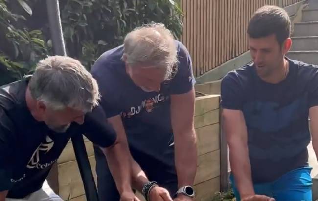 Nole je sa svojim timom odlučio da postavi trambolinu, ali je to nešto teško išlo. Sve je to sa strane posmatrao mali Stefan, koji je sa nestrpljenjem čekao da se popne i skače.