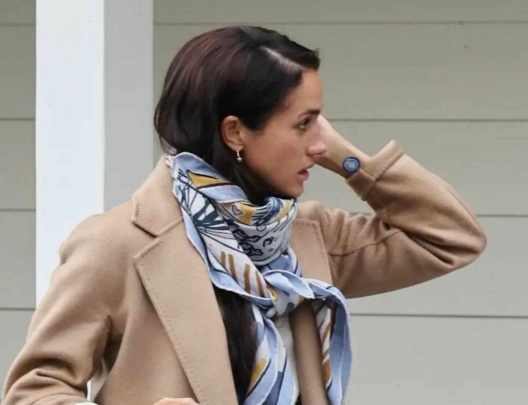 I dok se modni portali bave podacima da je reč o modelu "Maks Mara" koji košta više od hiljadu dolara, drugi su se zainteresovali za malu nalepnicu koja je primećena na Meganinoj levoj ruci.