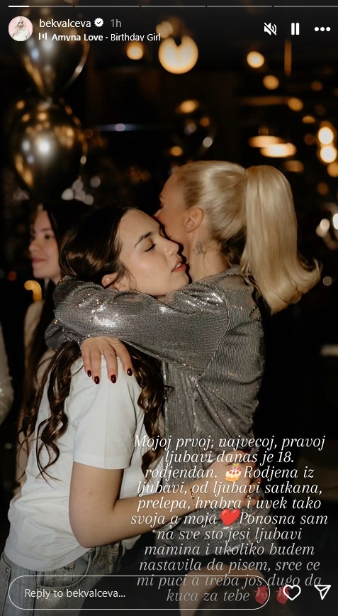 – Mojoj prvoj, največoj, pravoj ljubavi danas je 18. rođendan. Rođena iz ljubavi, od ljubavi satkana, prelepa, hrabra, uvek tako svoja, a moja. Ponosna sam na sve što jesi ljubavi mamina i ukoliko budem nastavila da pišem srce će mi pući, a treba još dugo da kuca za tebe – napisala je lepa Novosađanka.