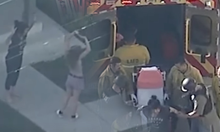 Policija u Los Anđelesu je upucala je suprugu rok zvezde 90-ih nakon što je ona navodno uperila pištolj u policajce koji su pokušavali da uhvate čoveka osumnjičenog za ubistvo.