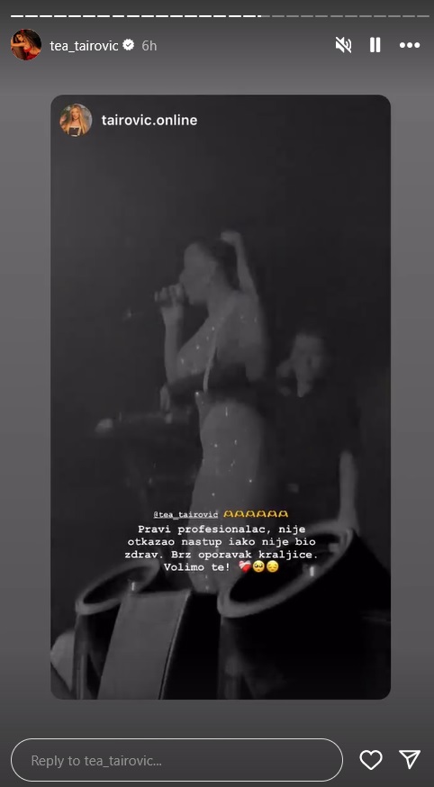Međutim, kako je veliki profesionalac, Tea je održala zakazan nastup u Tesliću.