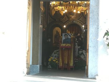Supruga Jelena, nalazi se u kapeli na Novog groblju pored kovčega koji je prekriven vencima, gde prima saučešće.