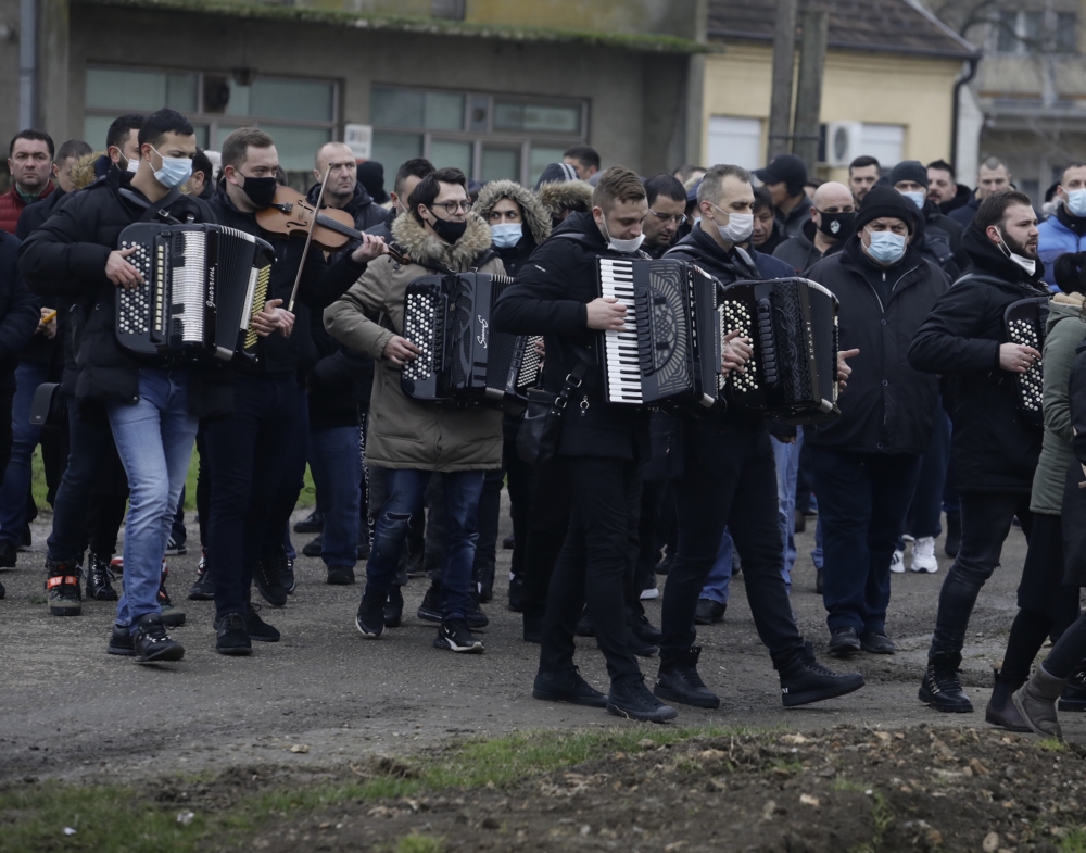 Milan je ispraćen uz harmonike, a ovaj instriment i on je svirao za života. Darko, kao i njegova majka Branka, skrhani su bolom i tugom, i ne mogu da zadrže suze zbog smrti voljenog oca i supruga.