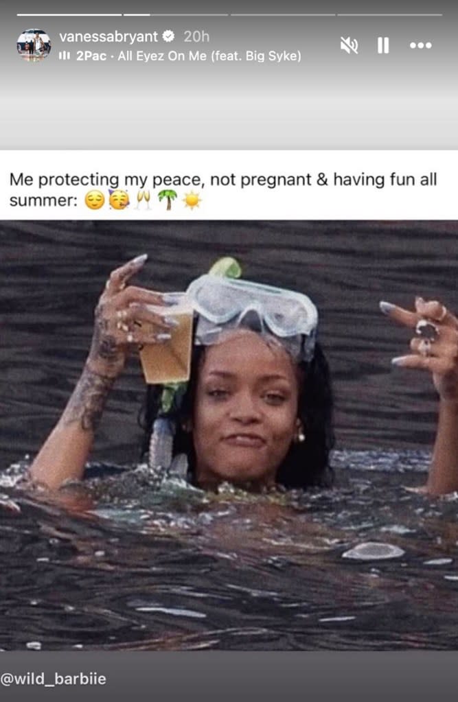 Uz provokativnu fotografiju Rijane koja uživa u bazenu i pokazuje srednji prst pisalo je "Štitim svoj mir, nisam trudna i zabavljam se celo leto".